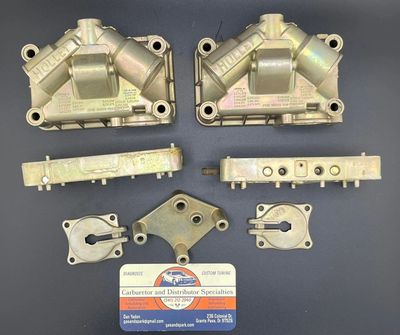 Send your bare, disassembled, air horns/ bodies/ metering blocks/ fuel bowls for coloring. Do not send linkages or other hardware! All repairs to these components should be made prior to sending for coloring or should be contracted a la carte with Carburetor and Distributor Specialties. This includes any honing / straightening, Helicoils, etc. Any steel components left on the carb body or components will have all protective finishes removed and will flash rust. it is okay to leave brass components in the bodies. It is recommended that you clean / inspect your components prior to sending. We will only clean/ polish / prep and color unless otherwise contracted to inspect / repair your parts!